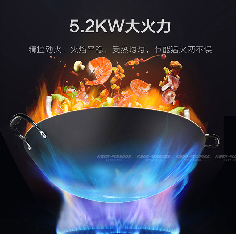 科恩KN610智能防干燒燃?xì)庠钭屜聫N成為一種享受,智能防干燒,安全再升級(jí)!左爐頭帶防干燒裝置功能,日本進(jìn)口探頭,持久耐用,意外忘記關(guān)火外出干燒時(shí),將會(huì)自動(dòng)關(guān)火,再也不用擔(dān)心溢鍋、燒干等狀況,讓烹飪更安心、更舒心!其實(shí),燃?xì)庠钅膫€(gè)好,主要還是體現(xiàn)在火力上,中國(guó)人講究爆炒,大火力才能使得爆炒更高效,集成灶十大品牌、廚電行業(yè)十大品牌科恩KN610智能防干燒灶具采用5.0KW精控勁火,火焰平穩(wěn)受熱均勻!一級(jí)能效66%的熱效率,燃燒更充分,KN610灶具能夠快速升溫催熟食材,烹制出口感好、色澤美、味道香的美食。