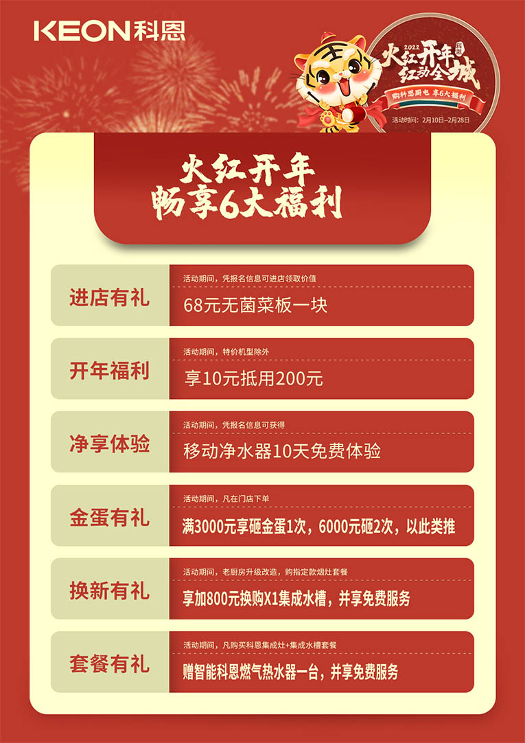 福利拉滿(mǎn),“虎”力全開(kāi)!科恩集成灶火紅開(kāi)年活動(dòng)火爆開(kāi)啟!