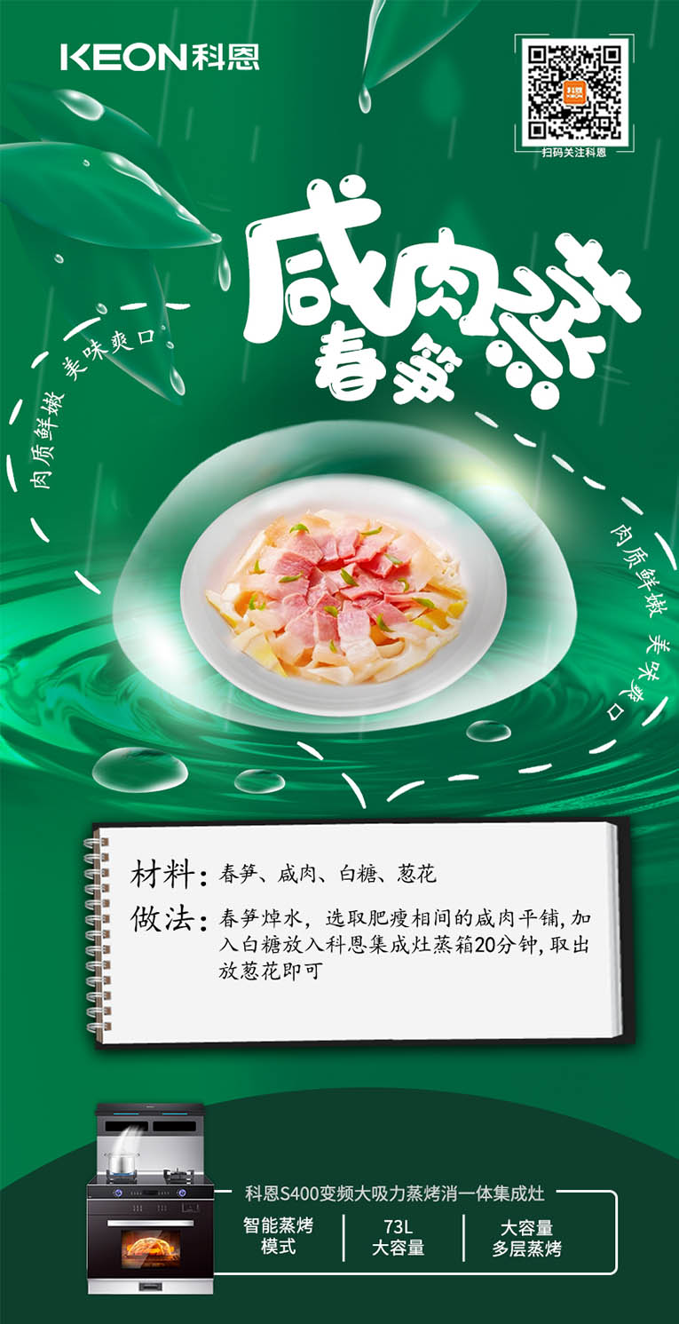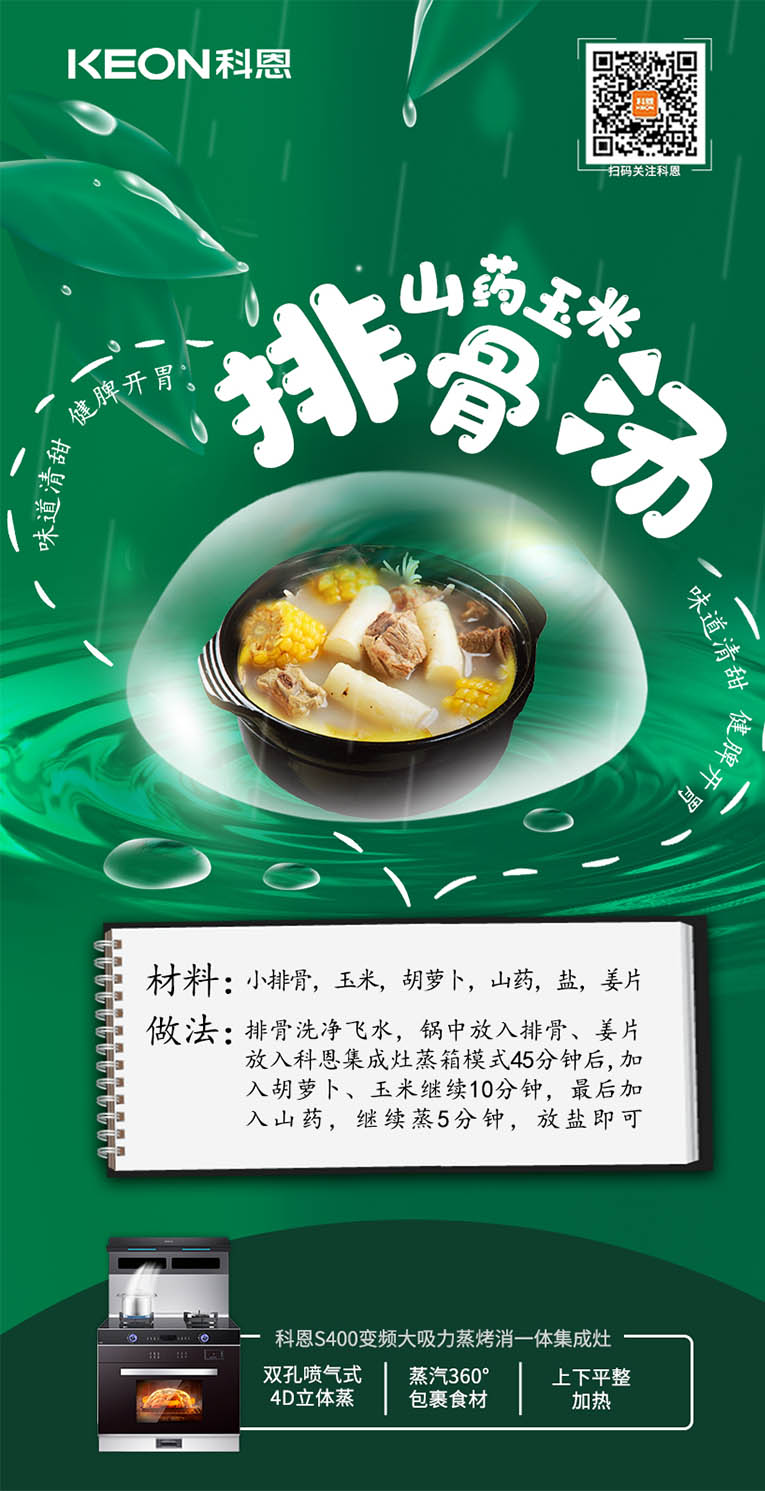 中醫(yī)認為肝主生發(fā),故春季肝氣旺盛,肝木易克脾土,養(yǎng)生不當容易損傷脾臟,從而導致脾胃功能的下降。雨水時節(jié)空氣濕潤,又不燥熱,正是養(yǎng)生的好時機,當然首先要調(diào)養(yǎng)脾胃。集成灶十大品牌、廚電行業(yè)十大品牌科恩集成灶多項全能,蒸煮、煲湯、煎炸、爆炒樣樣精通,輕松應(yīng)對您所需的烹飪方式,20m3/min大風量,720Pa大風壓,只留美味,不留油煙。