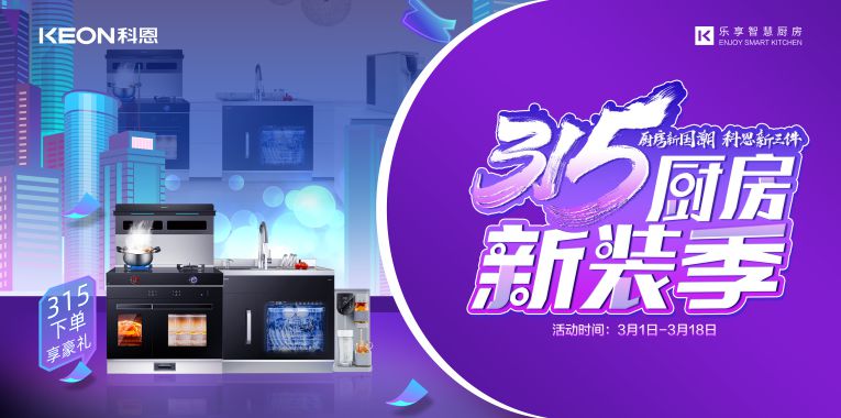 春季廚房換新裝,不妨考慮進(jìn)集成灶十大品牌、廚電行業(yè)十大品牌科恩集成灶全國(guó)各大專賣店,科恩廚房新國(guó)潮,科恩新三件,315廚房新裝季活動(dòng)火爆進(jìn)行中,下單享8大壕禮,為用戶提供更多樂享智慧廚房新選擇,從此愛上廚房!