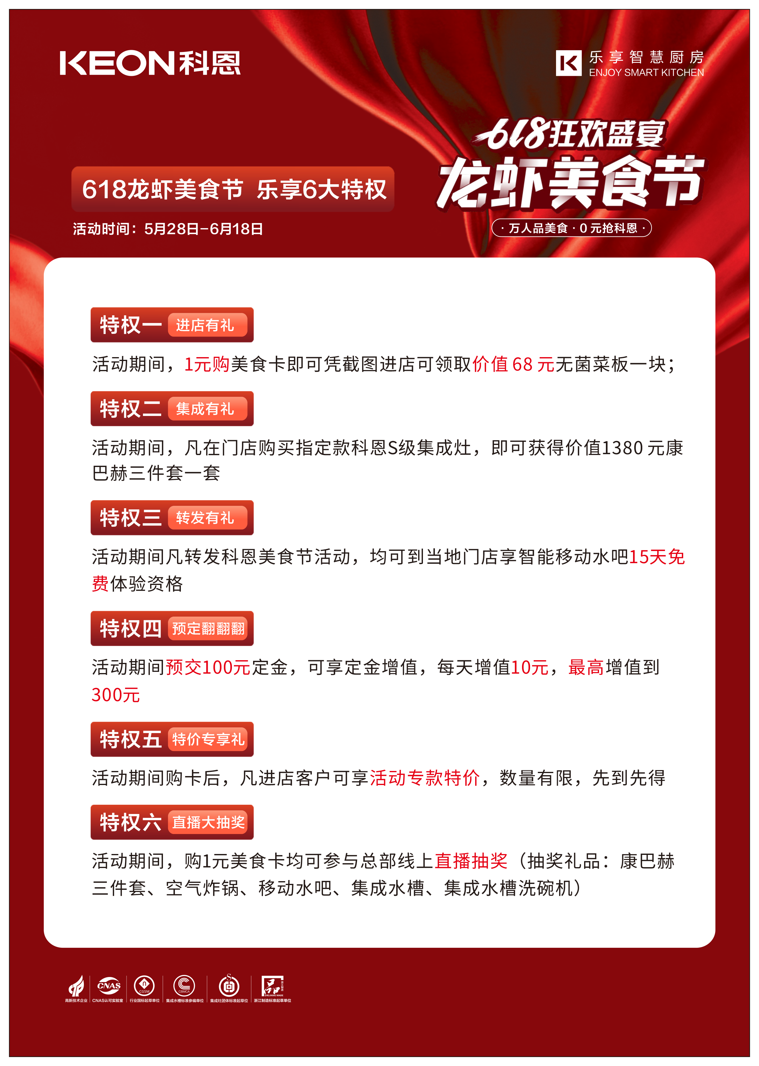 5月28日-6月18日 “萬人品美食,0元搶科恩”,科恩「龍蝦美食節(jié)」火爆開啟,何須苦等618,科恩提前開趴,邀您一起開啟618狂歡盛宴!