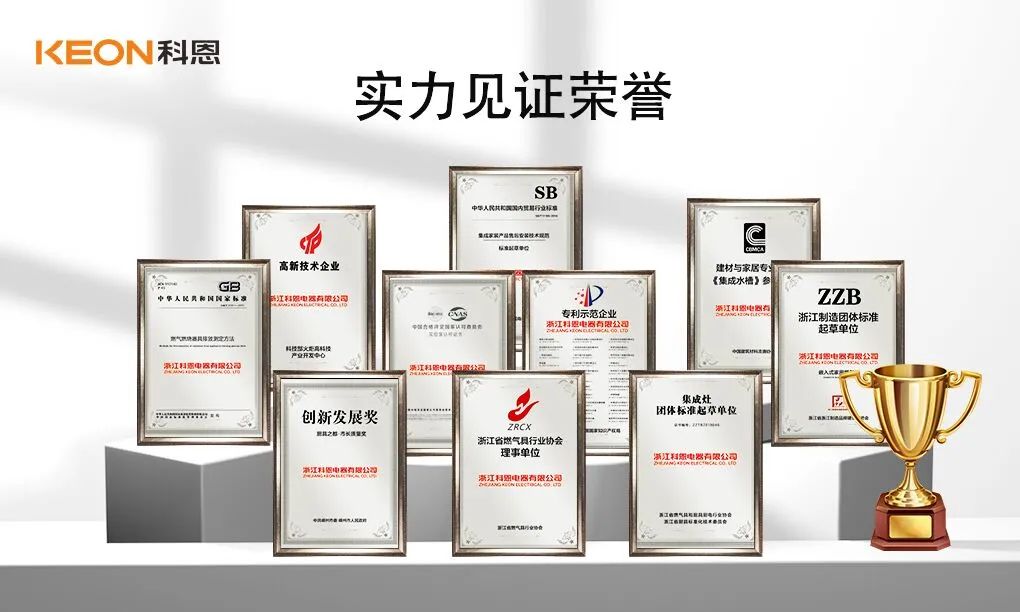 科恩從2009年締造首臺概念煙機到今天,全國專賣店已達近3000多家,13年載譽前行,先后榮獲國家高新技術企業、專利示范企業、集成灶/集成水槽十大品牌、行業國標起草單位、高效凈化環保之星、CNAS認可實驗室、浙江制造標準起草單位、集成灶團體標準起草單位、建材與家居專業標準《集成水槽》參編企業等殊榮。已獲得百余項專利知識認證,始終與國家力量接軌,打造國家認證新標準。值得一提的是,科恩還擁有CNAS國家認可實驗室,在行業中有著舉足輕重的地位。