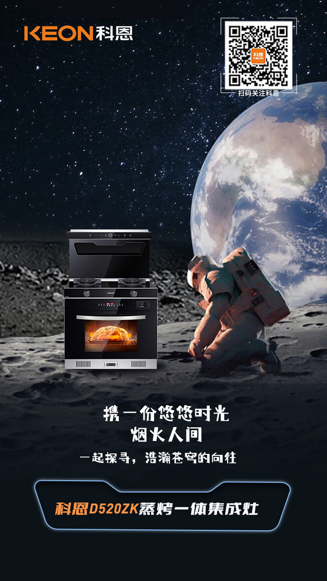 科恩D520ZK蒸烤一體集成灶以星際概念滲透廚房空間,方寸天地縱覽無垠闊境,廚房與星際云端跨界聯動,未來感與前沿科技相得益彰,科恩D520ZK由此誕生。