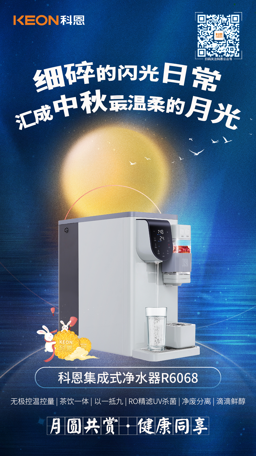 生活是一半人間煙火,一半山河遠(yuǎn)闊,你眺望詩(shī)和遠(yuǎn)方,卻也別忘了家的方向,卸下滿身疲憊,拋開城市的車水馬龍,用一臺(tái)科恩集成式凈水器R6068,一杯咖啡一壺清茶一杯溫度適宜的熱水,細(xì)碎的閃光日常,倒?jié)M愛(ài)的溫度,匯成中秋最溫暖的月光!