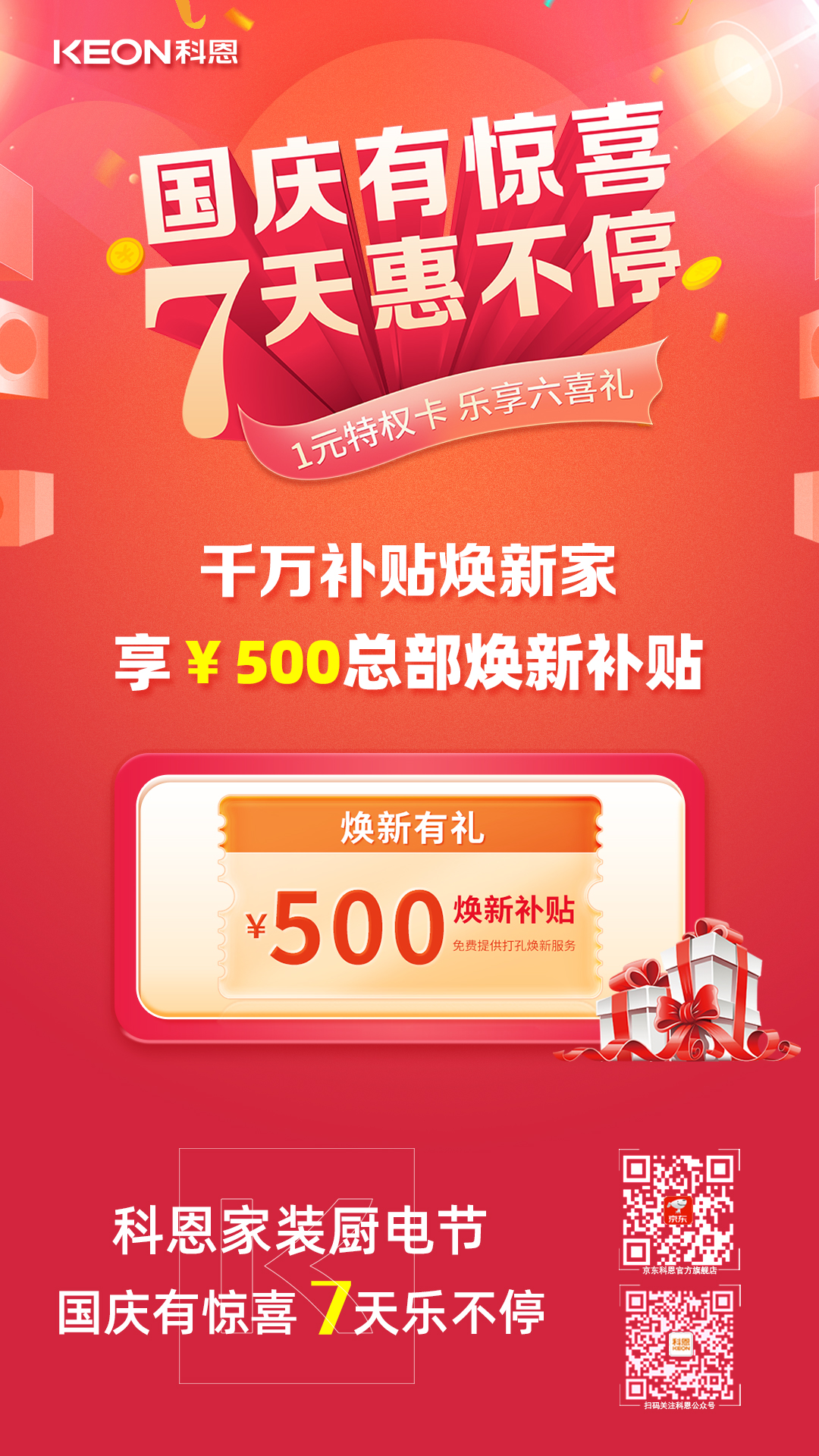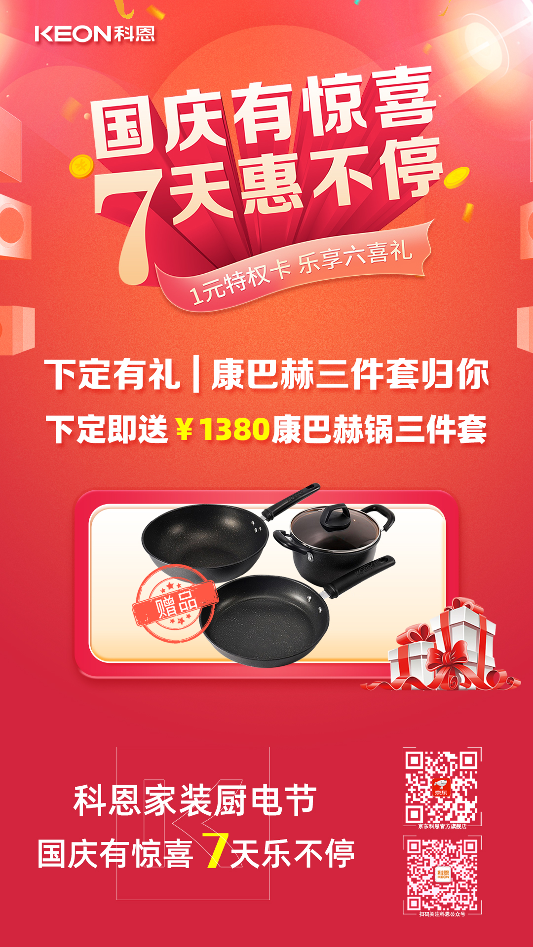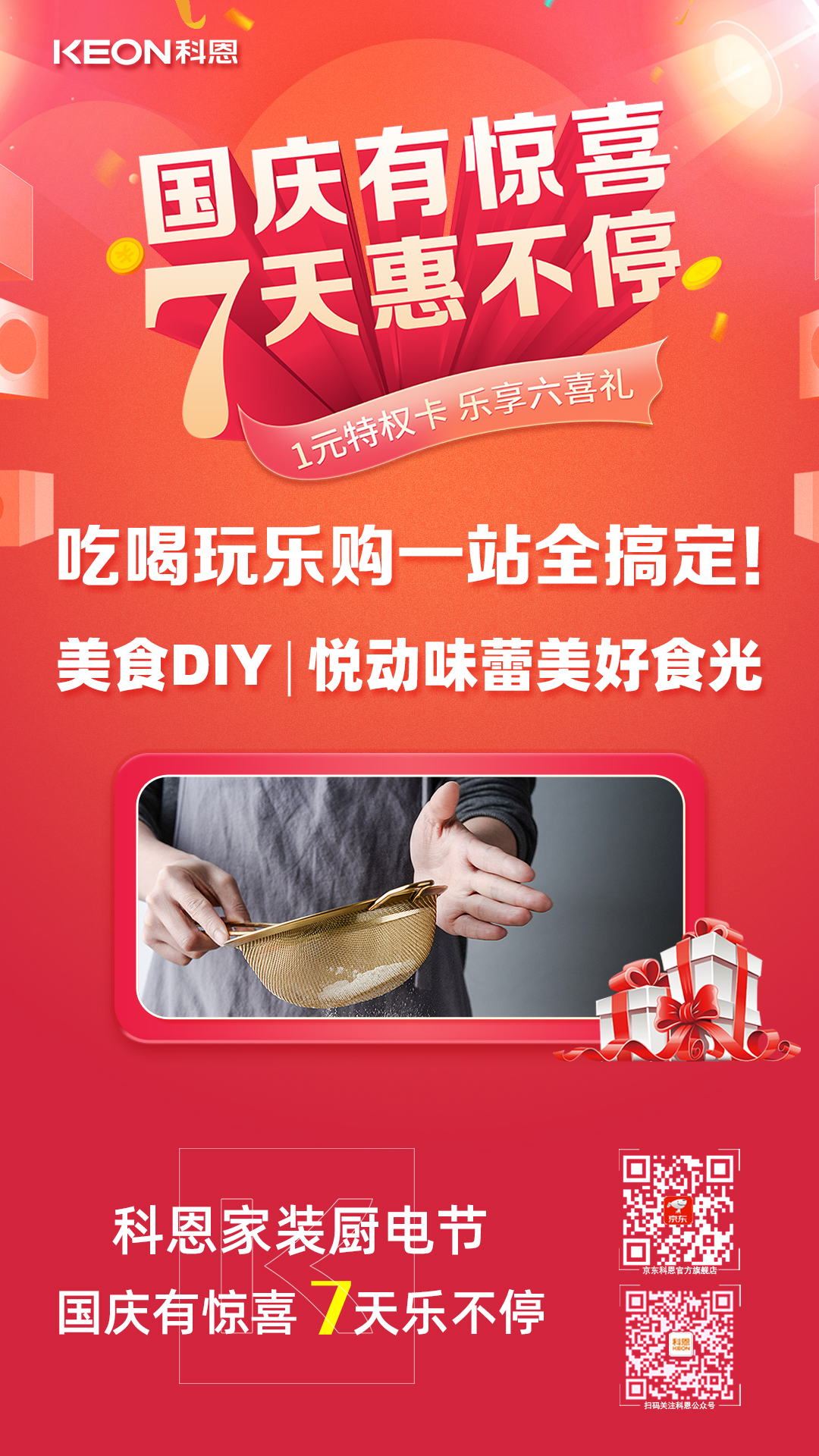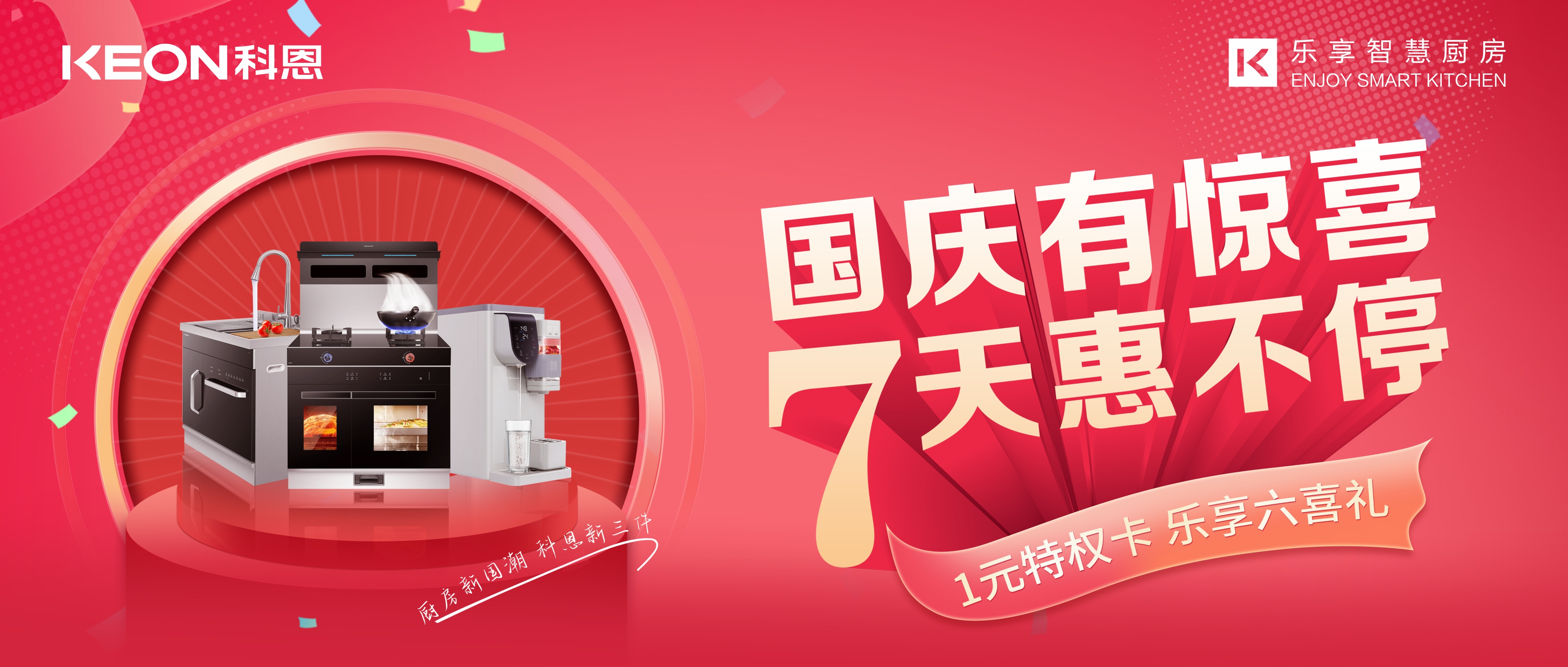 國慶價·提前享,科恩家裝廚電節(jié)之國慶專輯——國慶有驚喜,7天惠不停,科恩集成灶帶你嗨購黃金周!
