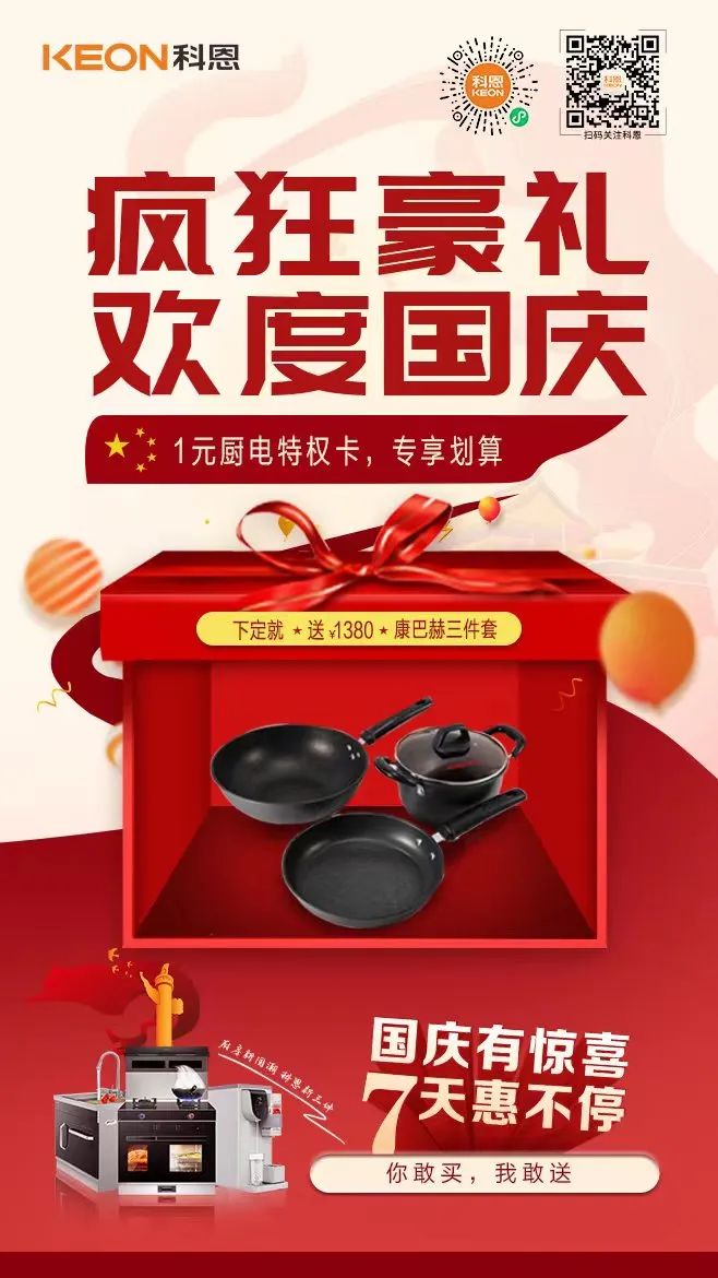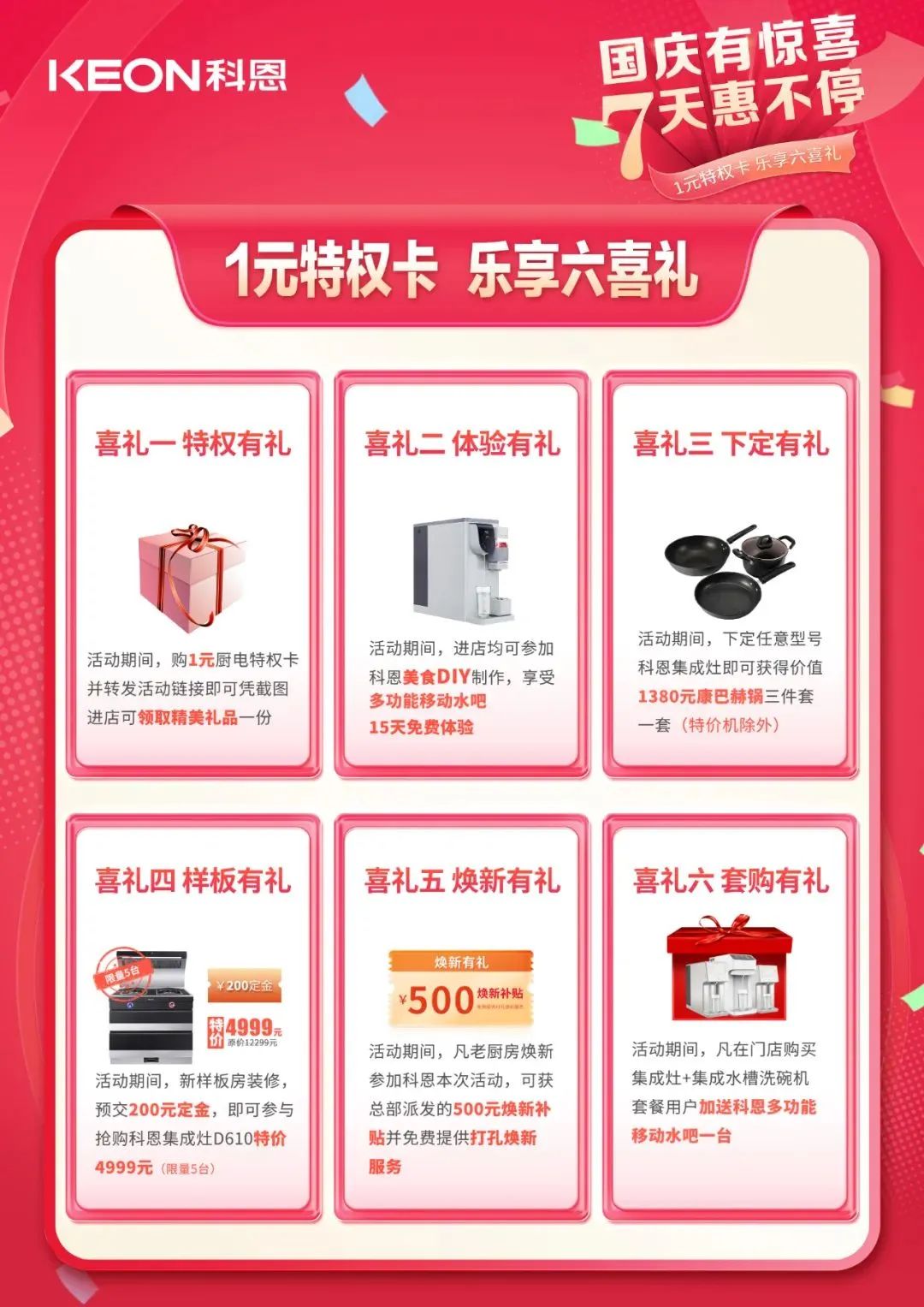 1元瘋搶,給力國慶,科恩家裝廚電節(jié)國慶專輯——國慶有驚喜,7天惠不停正火熱進(jìn)行中,力度空前,更有豪華大禮包驚喜贈送,全民鉅惠,就在科恩家裝廚電節(jié),更多鉅惠活動請?jiān)斣兛贫鞲鞔箝T店!