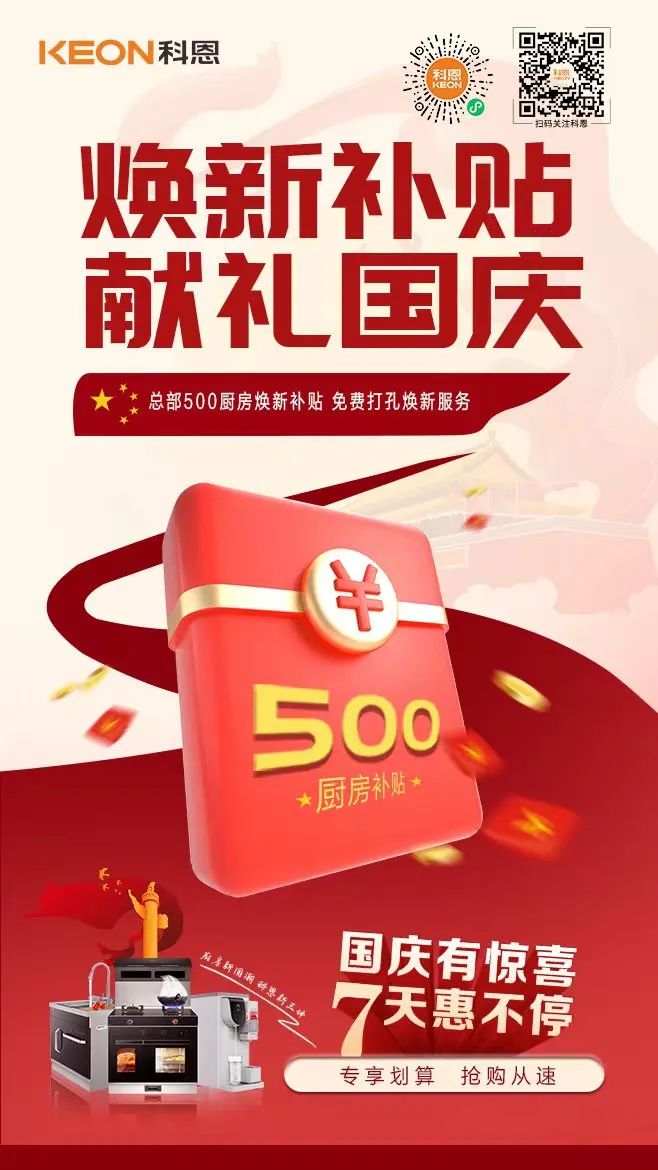 活動期間,凡老廚房煥新參加科恩本次活動,可獲得總部派發(fā)的500元煥新補(bǔ)貼并免費(fèi)提供打孔煥新服務(wù)!