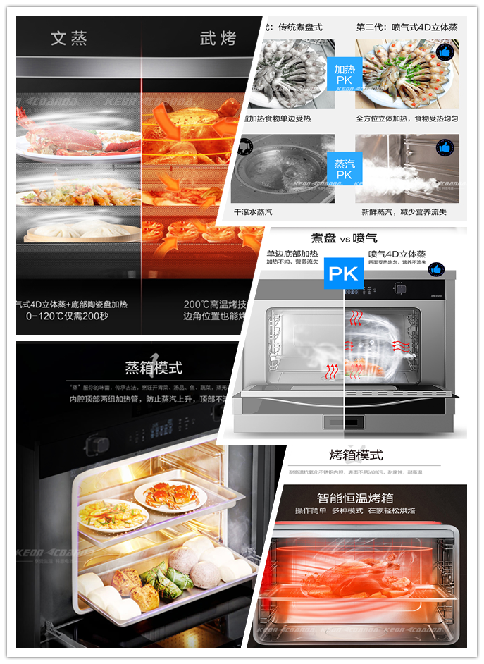 與此同時,科恩集成灶采用側(cè)吸下排的方式,嚴(yán)格把握10-20cm黃金攏煙區(qū),吸力直逼煙源,截斷油煙路徑,內(nèi)置直流變頻電機,油煙吸盡系統(tǒng),提供澎湃動力,爆吸技術(shù)高達21m3/min,吸煙能力更強,煮婦(夫)們再也不用天天和油煙“戰(zhàn)斗”。更值得一提的是,科恩集成灶實用性特別強,如科恩智能蒸烤消一體集成灶擁有62L黃金容量空間,四層蒸烤架設(shè)計,一次可蒸制一桌菜,多種蒸烤模式隨心選擇,甜品、點心、烤雞等美食想吃就吃??贫髦悄苷艨鞠惑w集成灶采用4D立體直噴蒸烤模式,更能精準(zhǔn)控溫,蒸汽動態(tài)平衡技術(shù)保證多種食材同時烹飪不串味,外置隱藏式水箱,輕輕一按即可自動彈出,加水更方便省心,有了TA煮婦(夫)們做飯不再手忙腳亂,輕松烹飪一桌大餐!