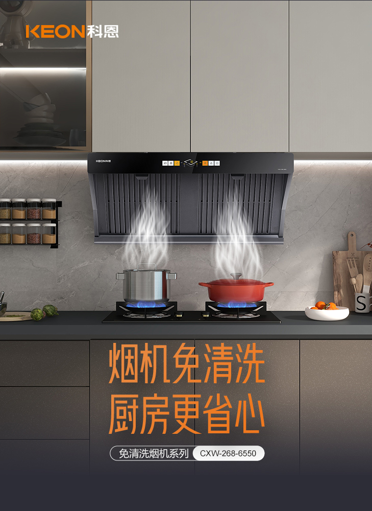 科恩6530免清洗煙機的面世,給無數用戶帶去了全新的廚房生活理念。不用清洗的油煙機,讓人們真正體驗到了便利的廚房生活。也因此6530可謂是火爆全網,暢銷全國!科恩隨即研發了6530姊妹款6550