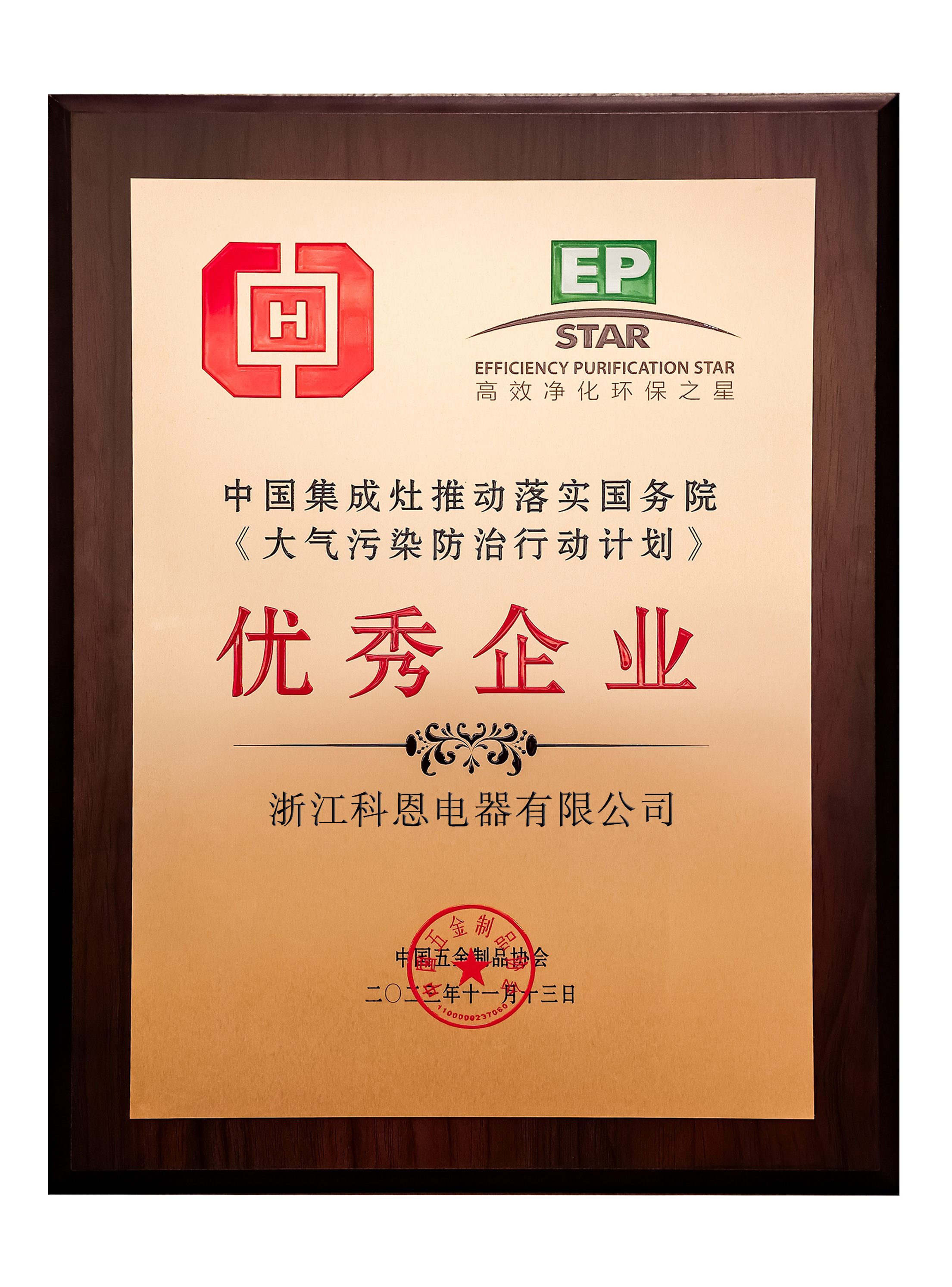 2023年11月28日,主題為“煙火人間 凈秀山河”有中國五金制品協(xié)會(huì)召開的“中國五金制品協(xié)會(huì)吸油煙機(jī)分會(huì)·換屆&技術(shù)大會(huì)暨‘高效凈化環(huán)保之星’10周年慶典”在杭州隆重舉辦。會(huì)上發(fā)布了獲得本屆“高效凈化環(huán)保之星”的優(yōu)秀企業(yè),并向多年來連續(xù)參與此項(xiàng)目并表現(xiàn)突出的企業(yè)給予了嘉獎(jiǎng)。科恩再一次榮獲“中國五金制品協(xié)會(huì)-理事單位”及“中國集成灶推動(dòng)落實(shí)國務(wù)院《大氣污染防治行動(dòng)計(jì)劃》-優(yōu)秀企業(yè)”!
