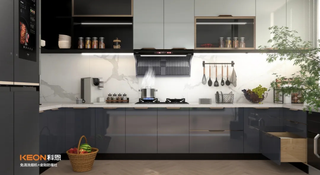 這個時候又有很多人說,開放式廚房會不會造成油煙亂跑,整個房子都油膩膩的?選對廚電產品能徹底幫你解決這個難題!
