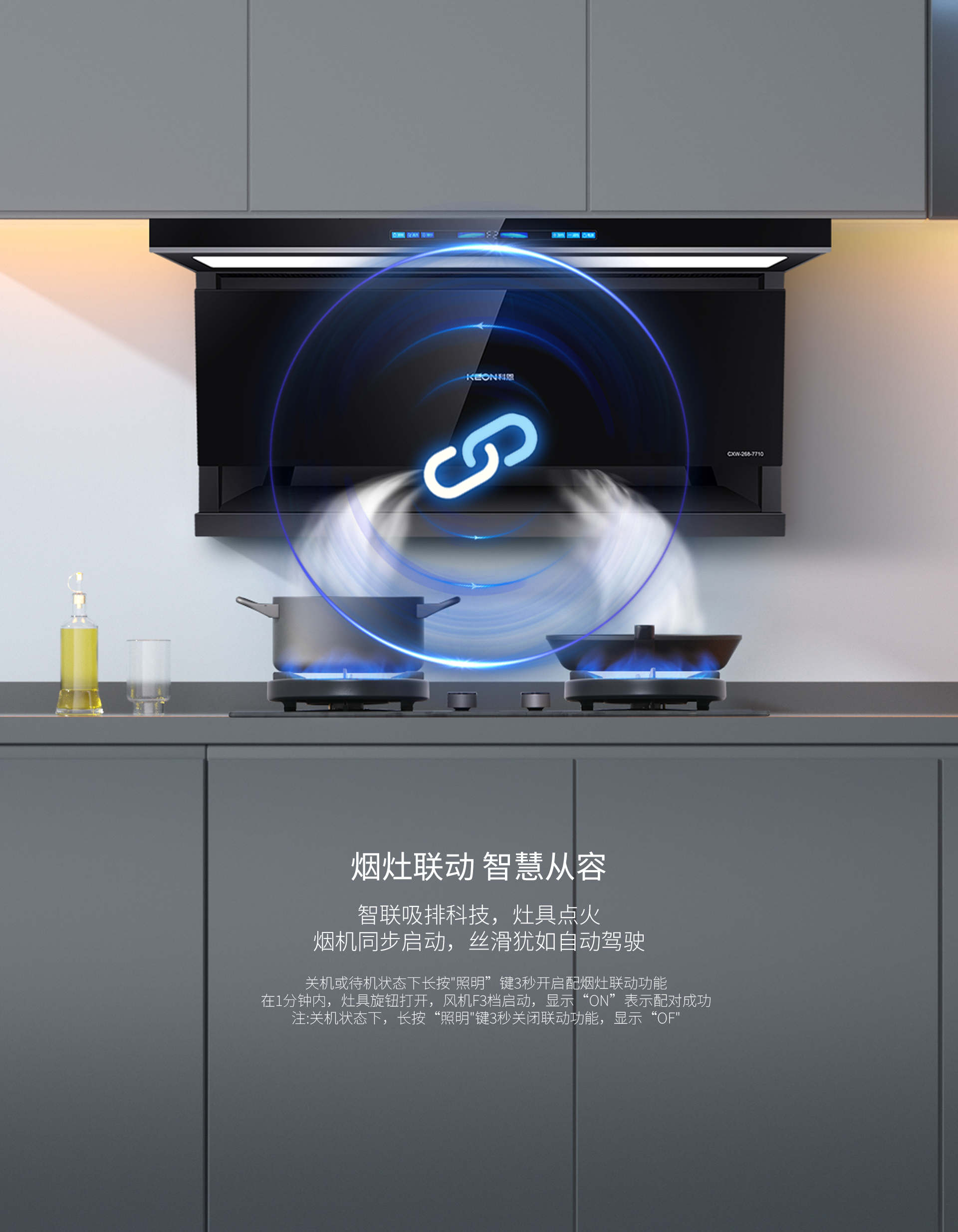 讓烹飪更舒心,科恩7710智能聯(lián)動油煙機(jī)!
