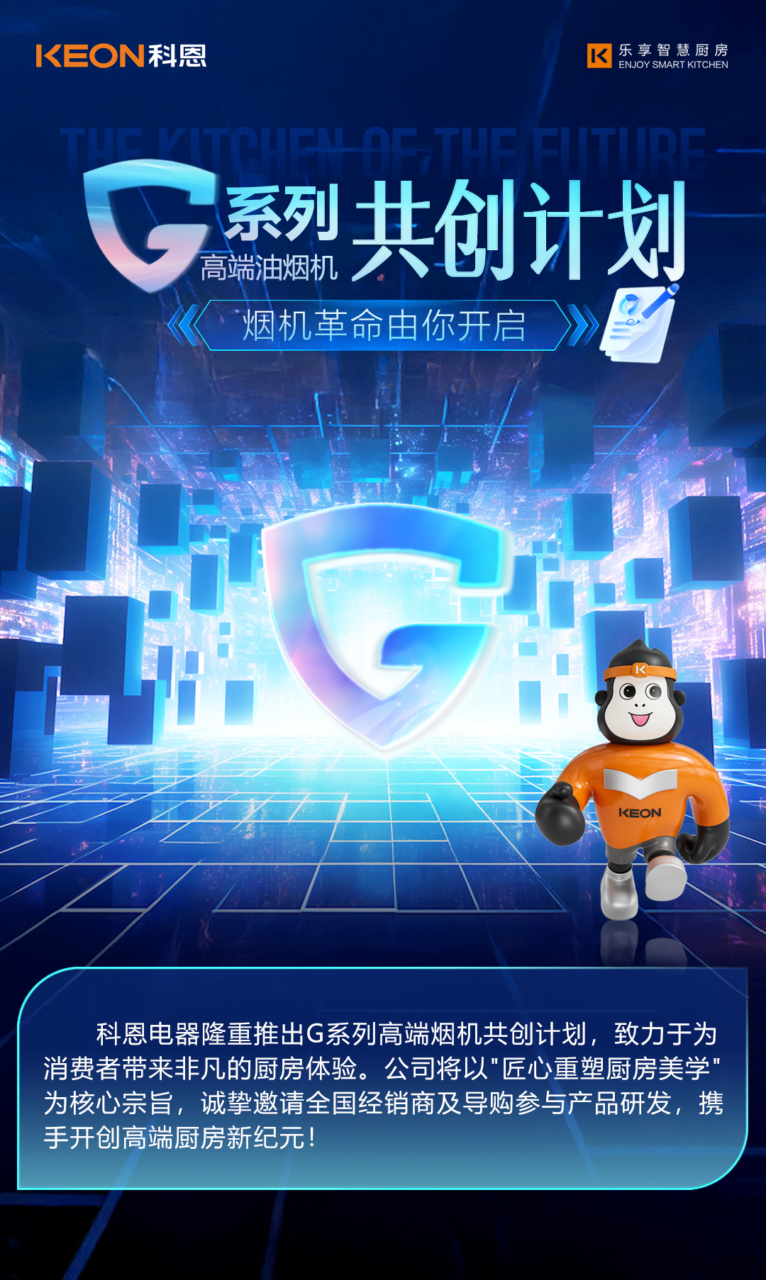 廚房,是家的心臟,承載著無數溫暖與美味。科恩以用戶視角為核心,為打造極致廚房體驗,正式啟動2025 G系列高端油煙機合作伙伴共創計劃。公司將秉持以匠心重塑廚房美學的產品理念,誠邀科恩全國經銷商、導購、售后參與產品研發,開啟金點子征集行動,共同攜手,開創高端廚房新紀元!