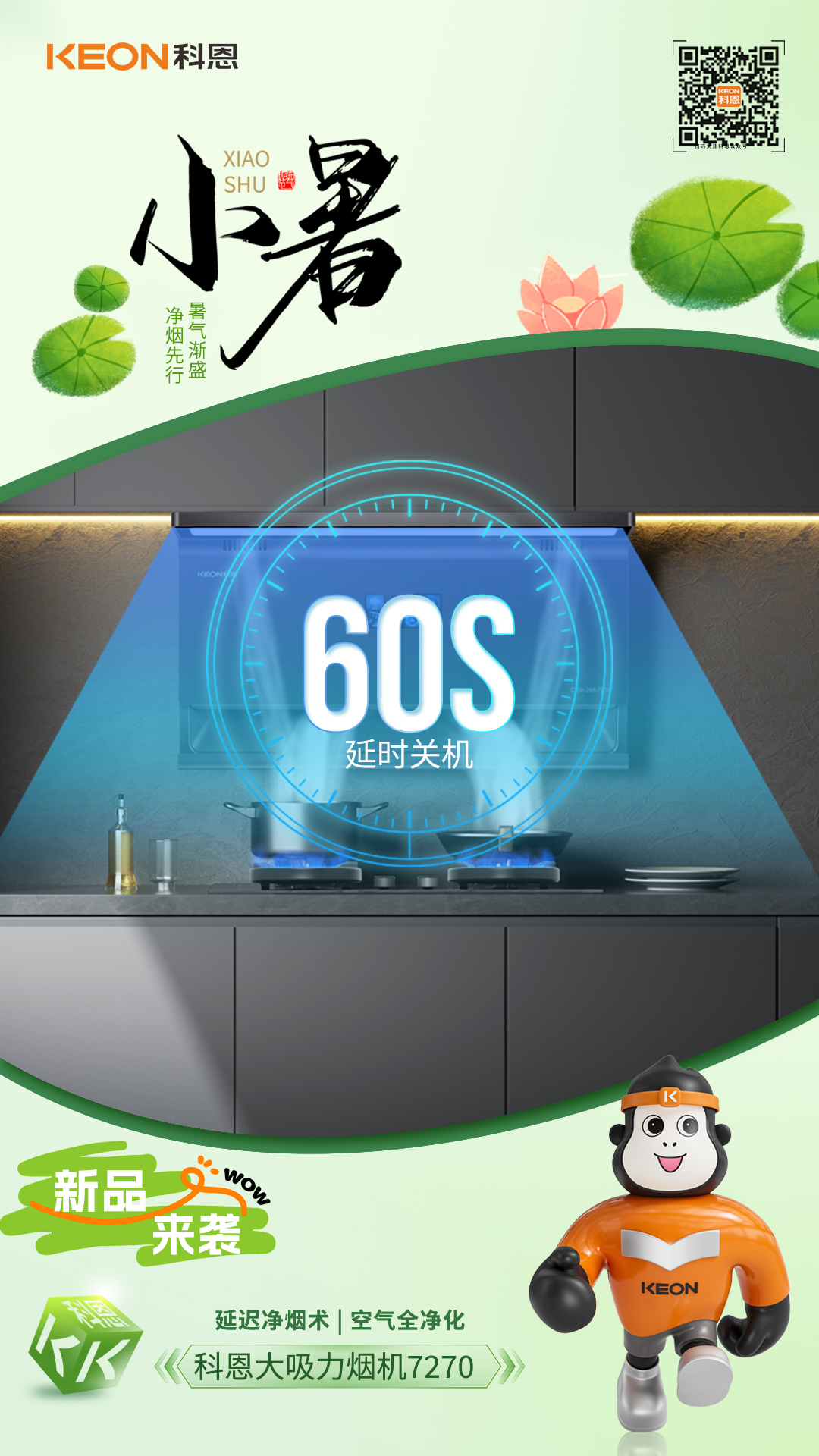 蟬鳴初起,熱浪翻涌。小暑時(shí)節(jié)廚房成高溫重災(zāi)區(qū),油煙升騰中包裹著暑氣更顯煩躁,科恩7270煙機(jī)攜25m³/min暴風(fēng)吸力來(lái)襲,為廚房筑起清涼防線(xiàn),讓凈煙快一步,生活慢享受。