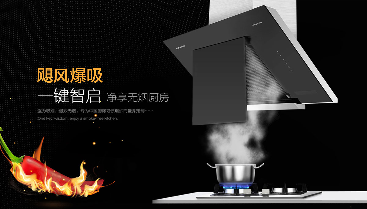 - 智能側(cè)吸變頻煙機(jī),解決公共煙道烹飪高峰排煙難的問題。
