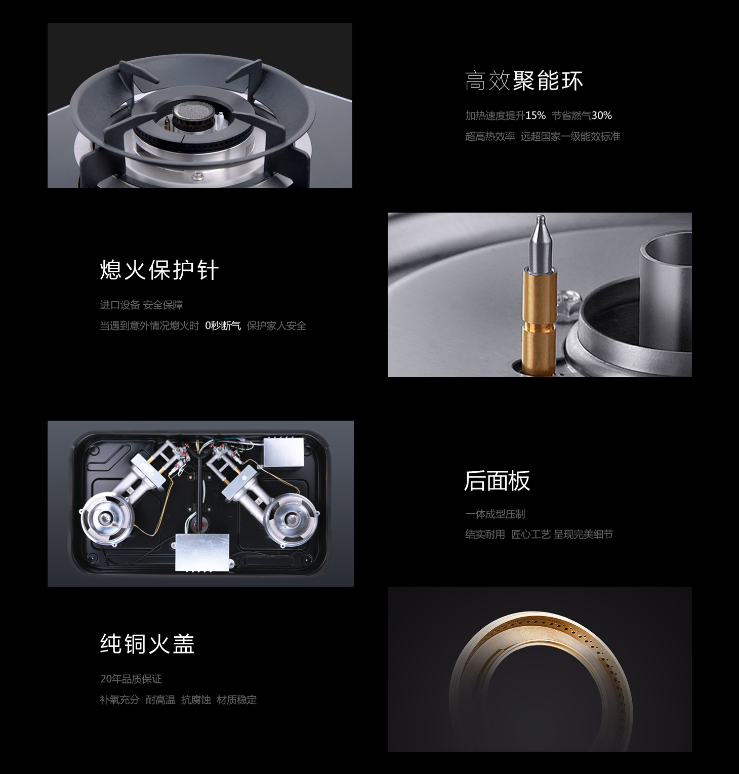 • 銅火蓋帶高熱效鑄鐵聚能環,熱效率高