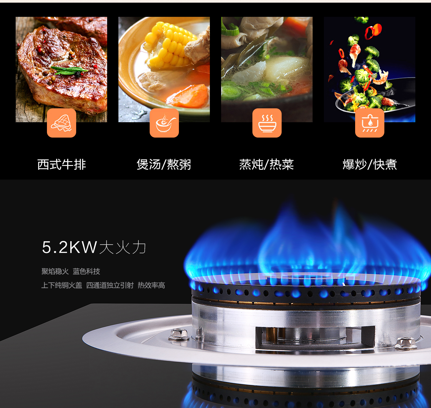 • 5.2kW大火力猛火爆炒,有實力更出眾
