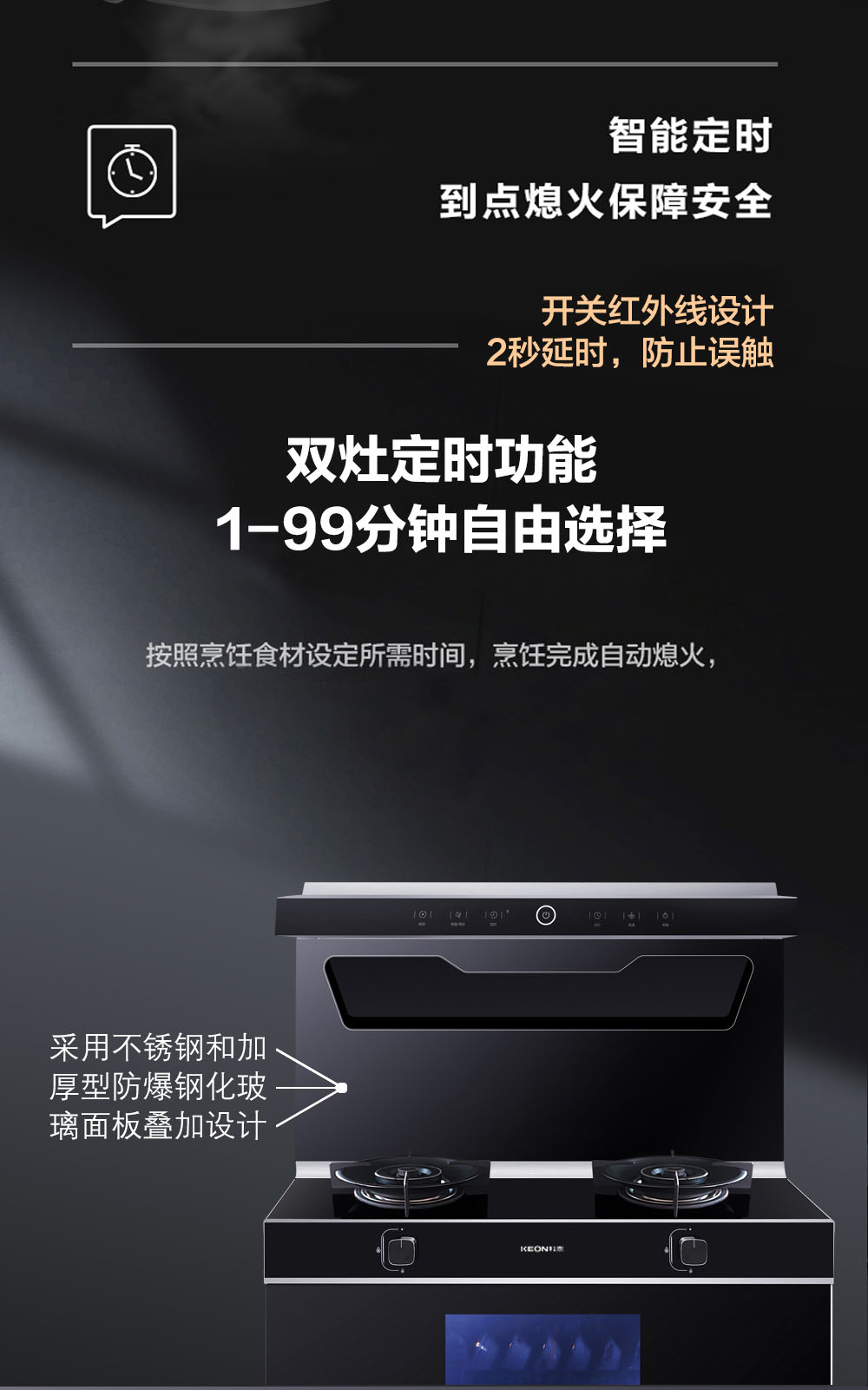 • 冷凝壁采用不銹鋼和加厚型防爆鋼化玻璃面板疊加設計,耐磨耐臟,不沾油好打理