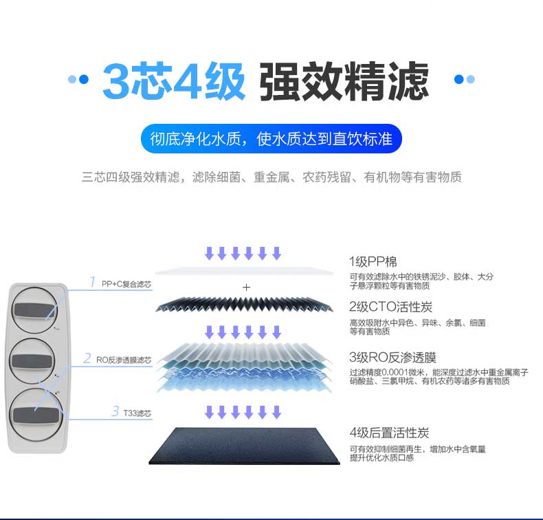 • 三芯四級強效精濾,濾除99%細菌重金屬
