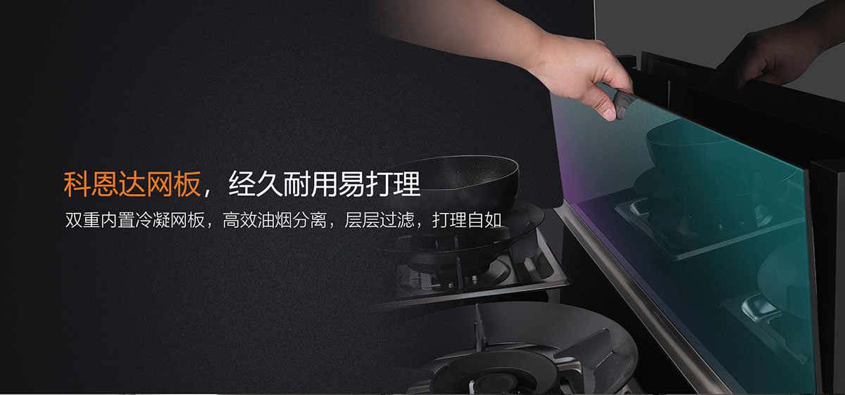 • 雙重冷凝網板,高效油煙分離,打理方便自如