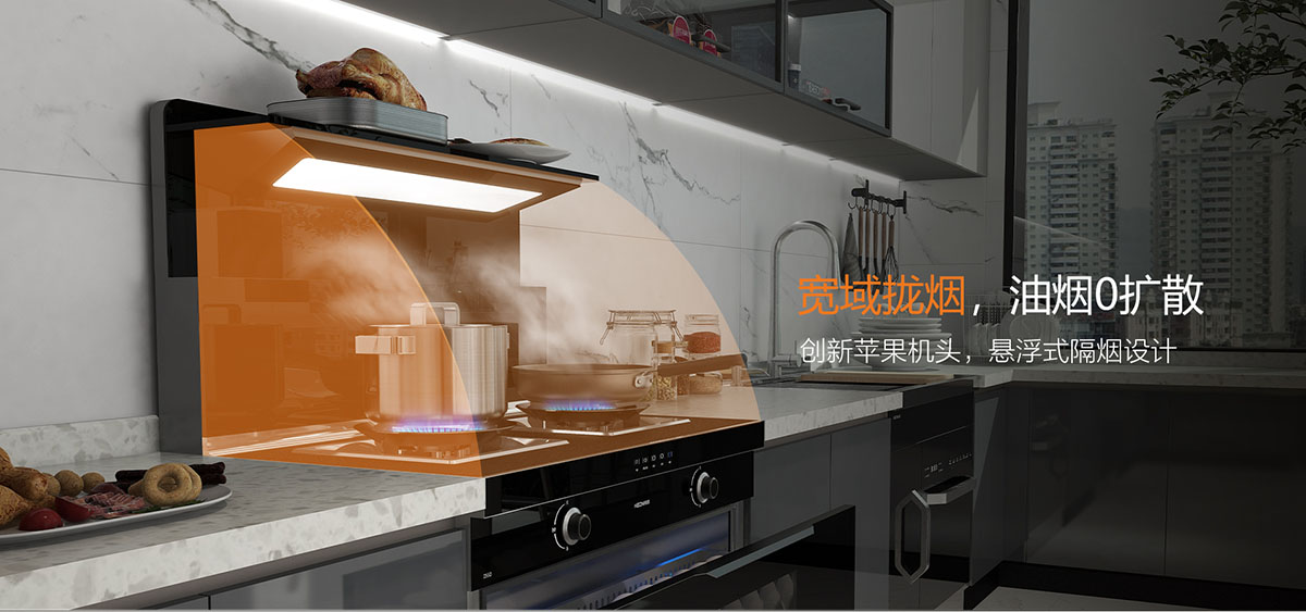 • 懸浮式隔煙設計,寬域攏煙,油煙0擴散