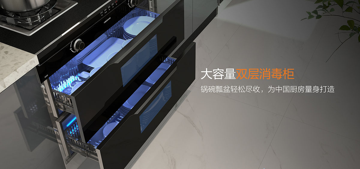 • 一體拉伸不銹鋼碗柜設計,收納一步到位