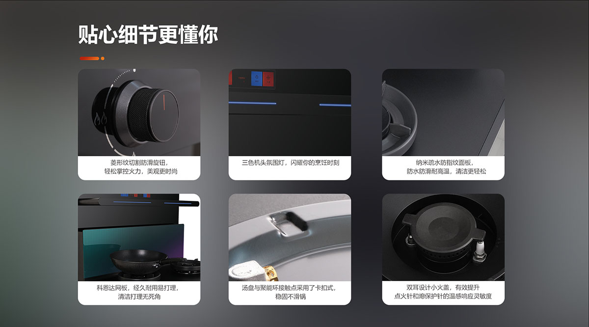 - 創新蘋果機頭,懸浮式隔煙設計,油煙0擴散