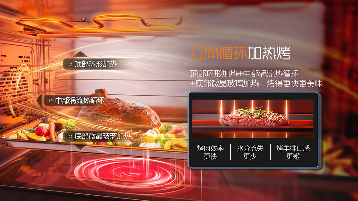 • 蒸烤獨立,雙管齊下,烹飪更高效