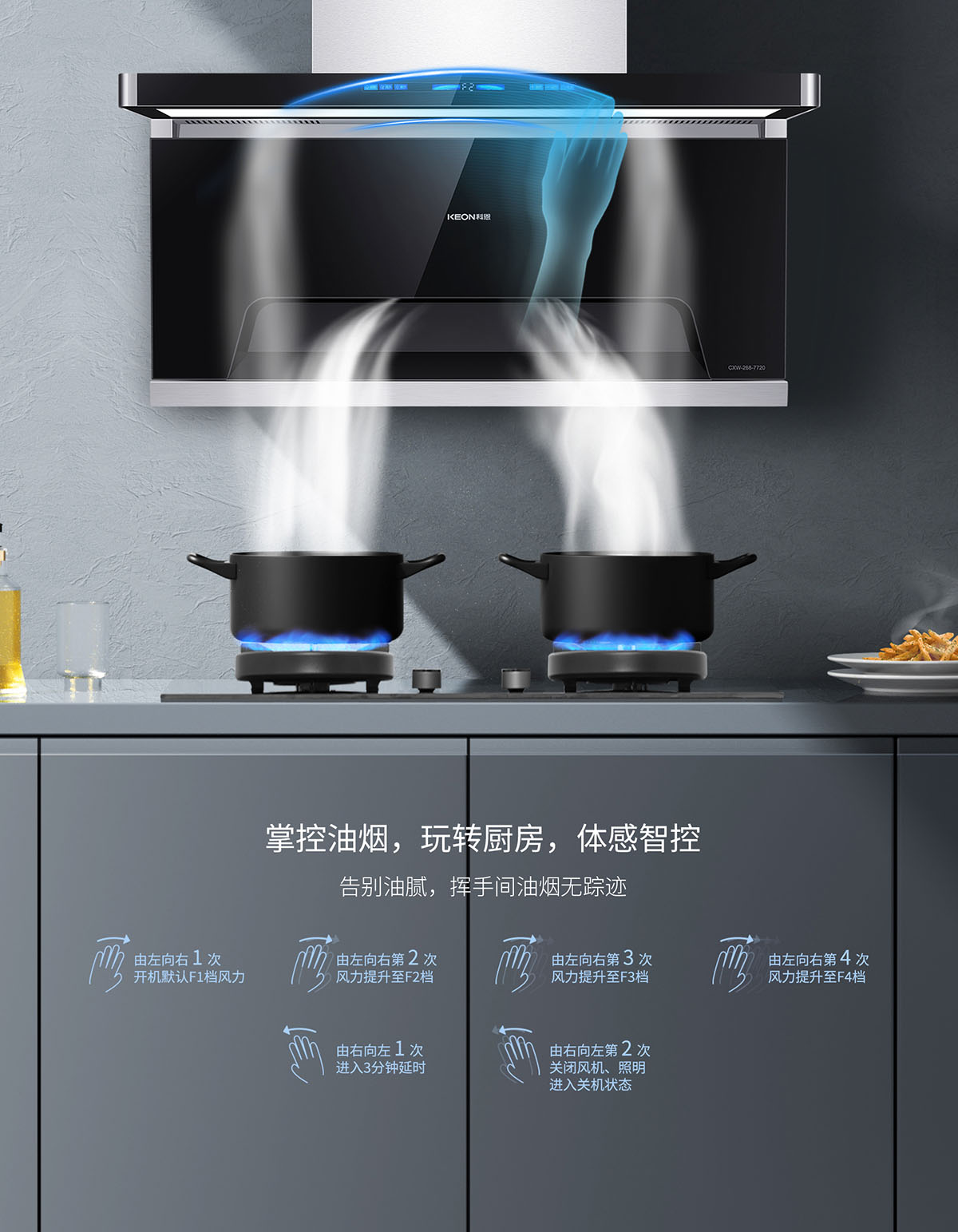 • 體感智控,揮手間油煙無蹤,杜絕油膩