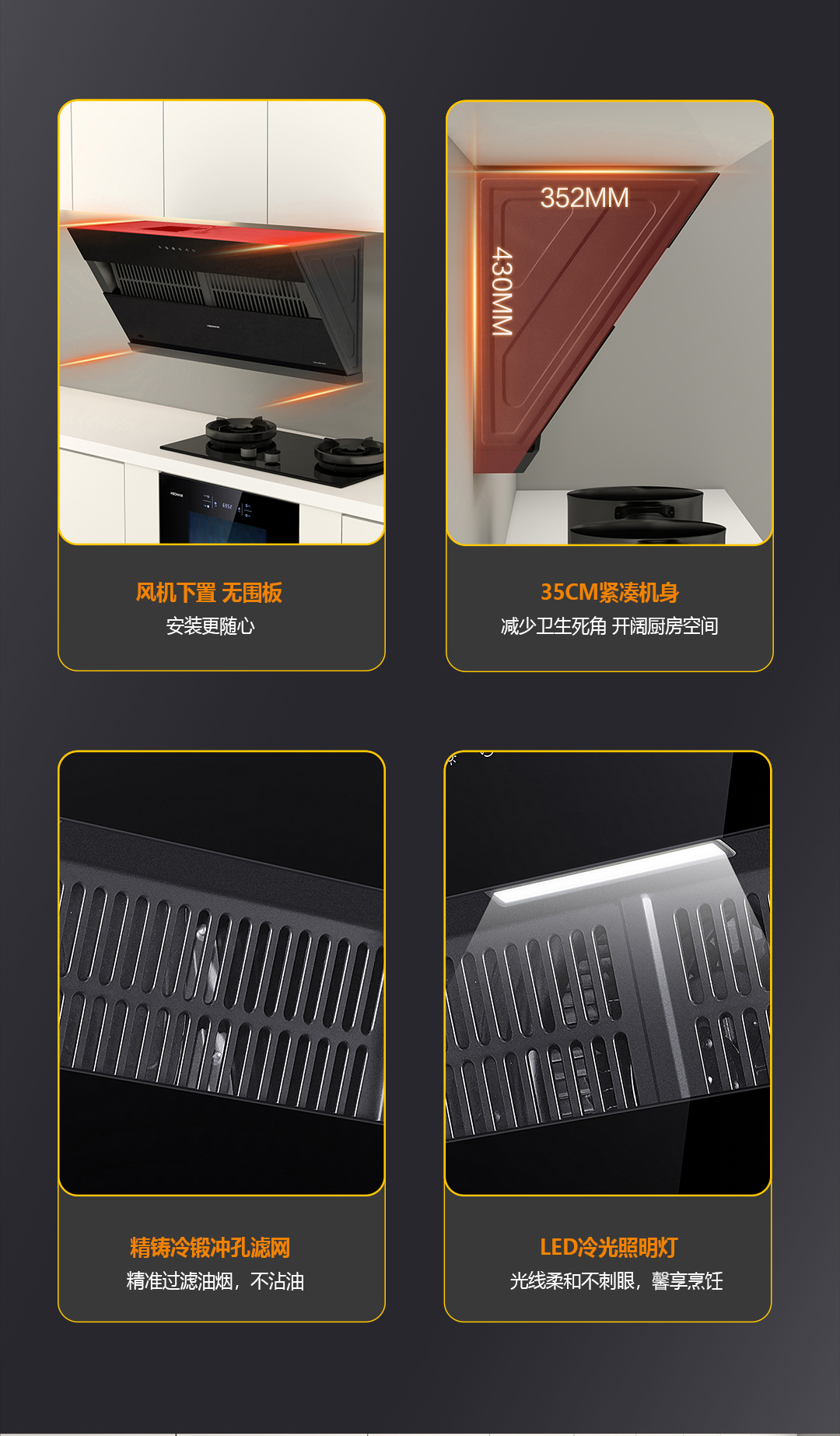 • 攏、吸、排三點一線,暢吸直排,高效凈煙