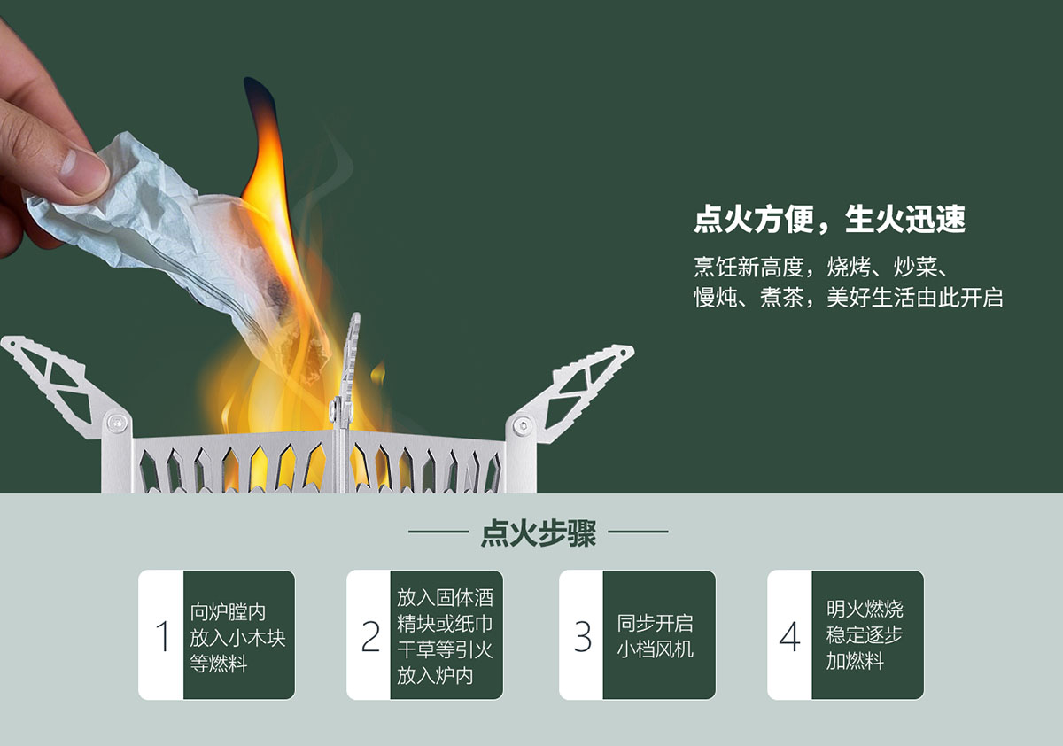 - 科學(xué)結(jié)構(gòu)設(shè)計(jì),點(diǎn)火方便,生火迅速