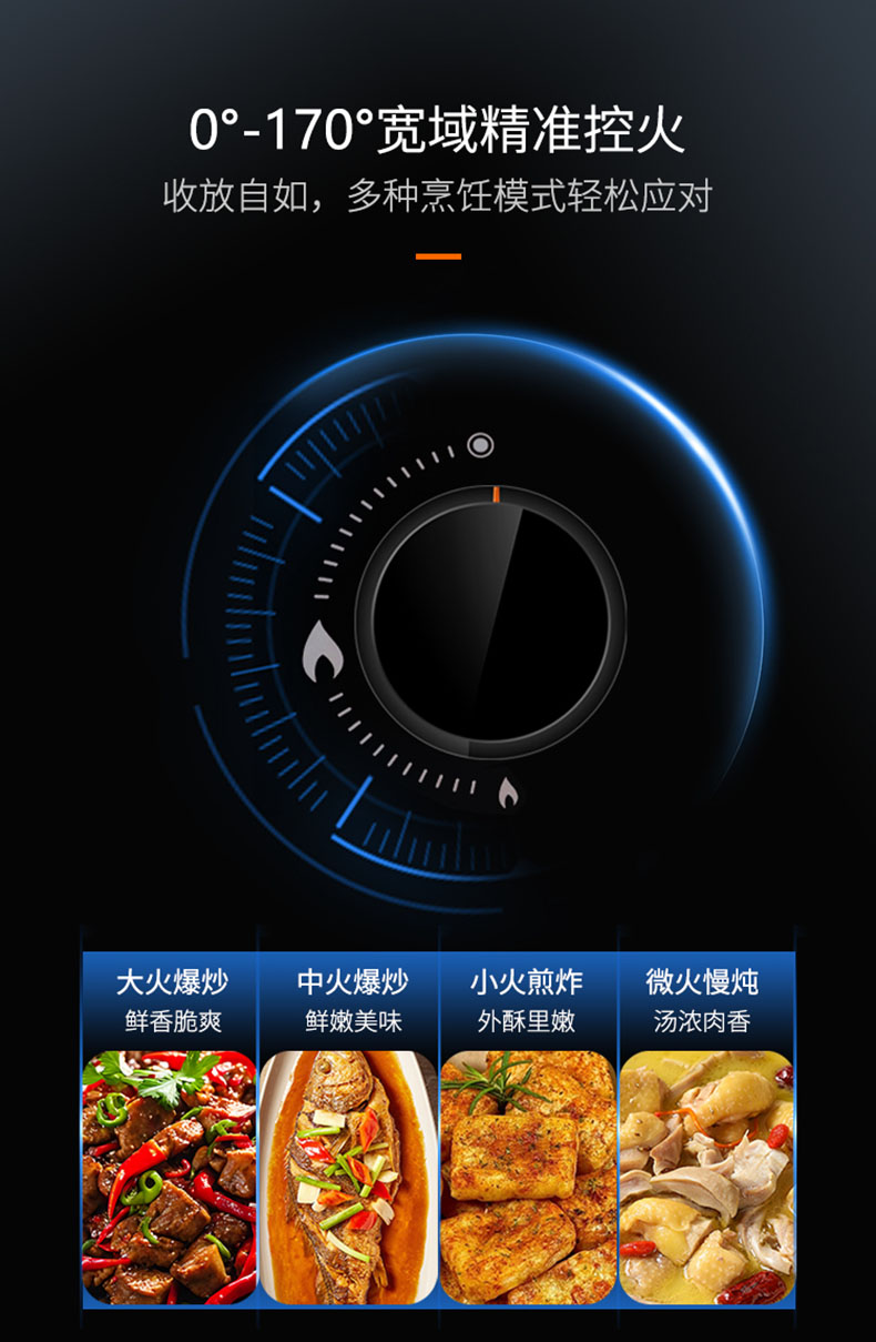 • 0°-170°寬域精準控火,收放自如