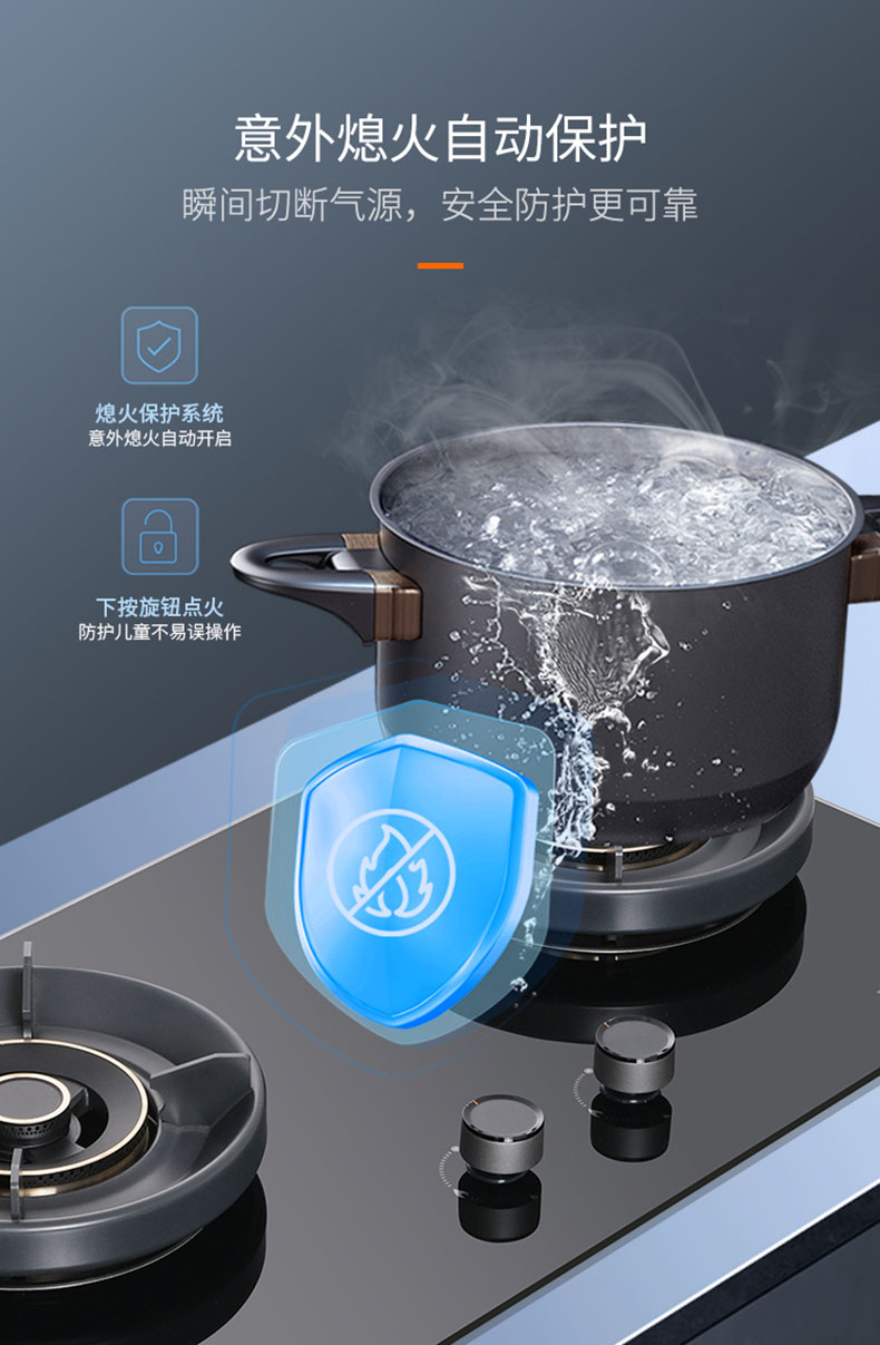 • 意外熄火保護,火滅即刻切斷氣源,安全防護有保障