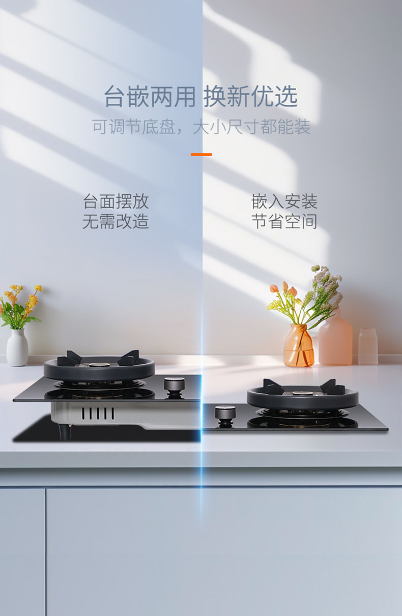 • 臺嵌兩用式,臺面直接放置,安裝不受限;嵌入安裝,完美貼合臺面