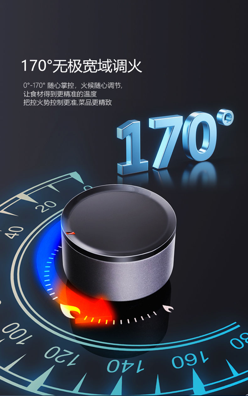 • 無極寬域調火,0°-170° 隨心掌控,火候自如