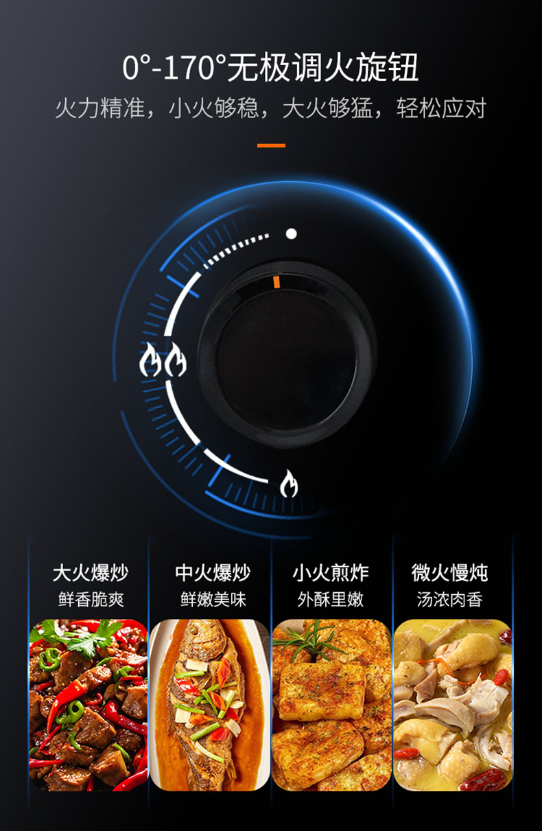 - 0°-170°無極調(diào)火旋鈕,精準控溫,烹飪得心應手