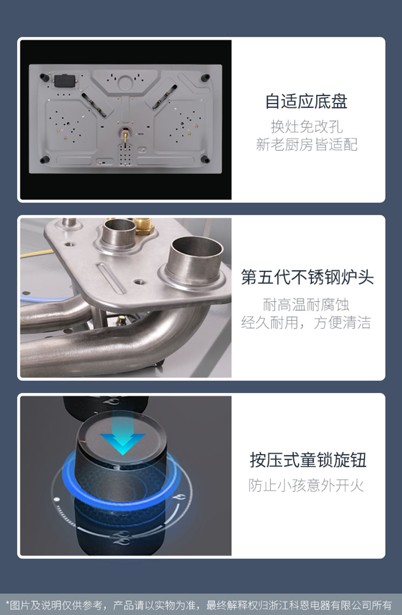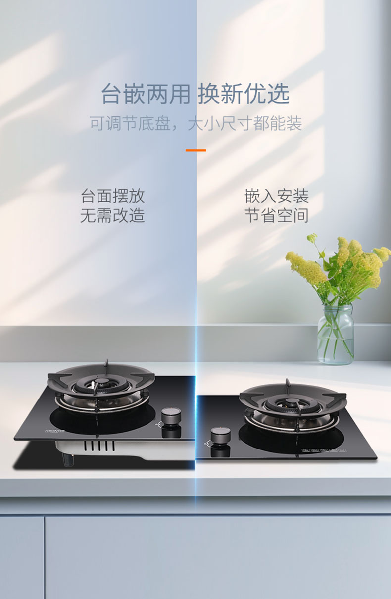 - 自適應底盤,換灶免改孔,新老廚房皆適配